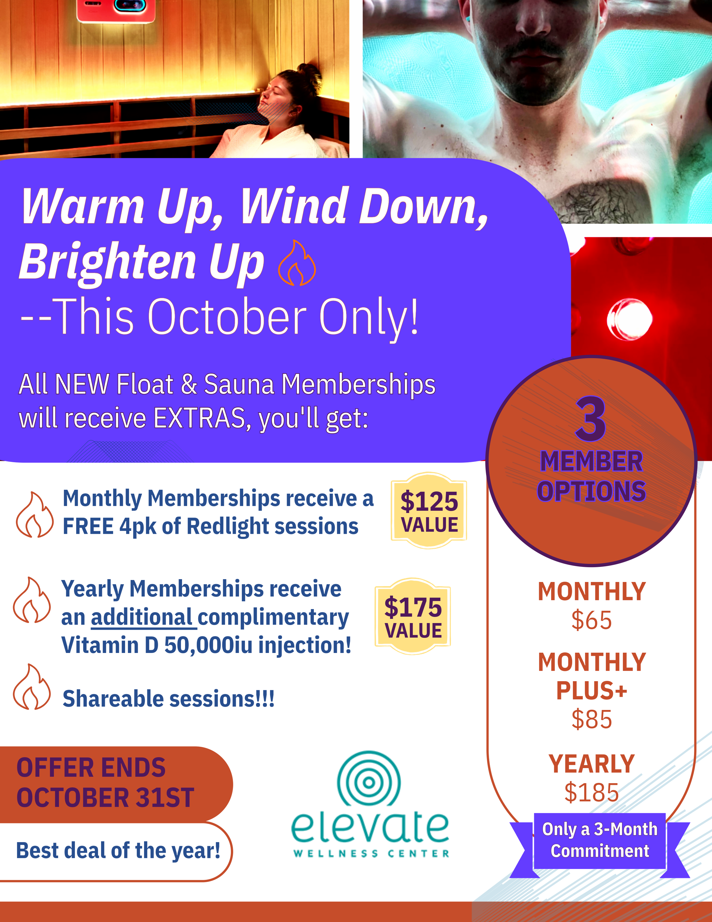 Includes a Float or Sauna session